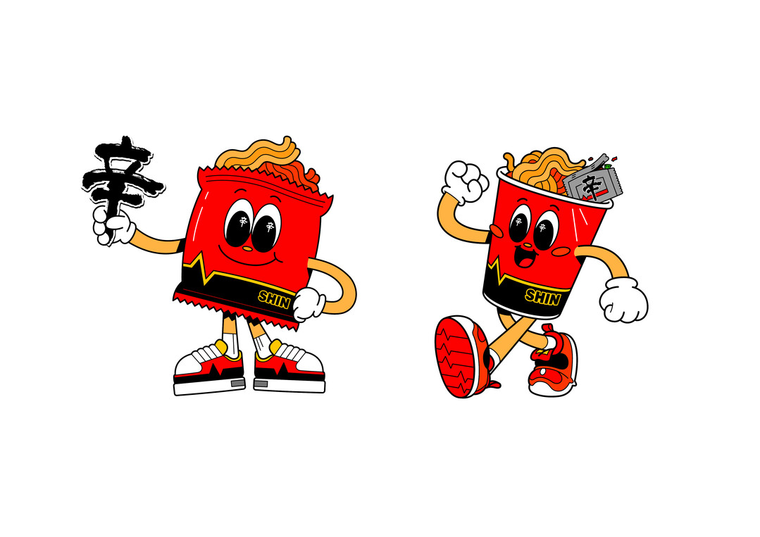 농심은 SHIN 캐릭터의 외형에 신라면 고유의 정체성을 담아냈다. 라면 면발과 신라면 봉지를 연상시키는 디자인을 바탕으로 눈동자와 소품에 ‘辛(매울 신)’ 자를 포인트로 활용했으며, 신발에는 맥박이 뛰는 펄스(Pulse) 디자인을 적용해 생동감을 살렸다.