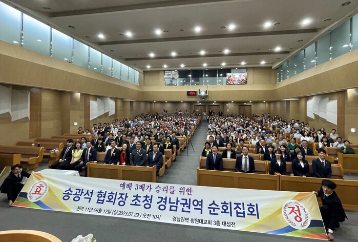 가정연합 창원대교회(박영배 대교회장)는 송광석 한국협회장이 취임 후 처음으로 지난 29일 오전 창원대교회를 방문, 경남권역 가정연합 목회자 부부 및 중심 신도 450여 명과 소통의 시간을 가졌다고 밝혔다.