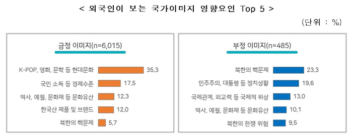 ▲외국인이 보는 국가이미지 영향요인 Top 5.(문체부 제공) |