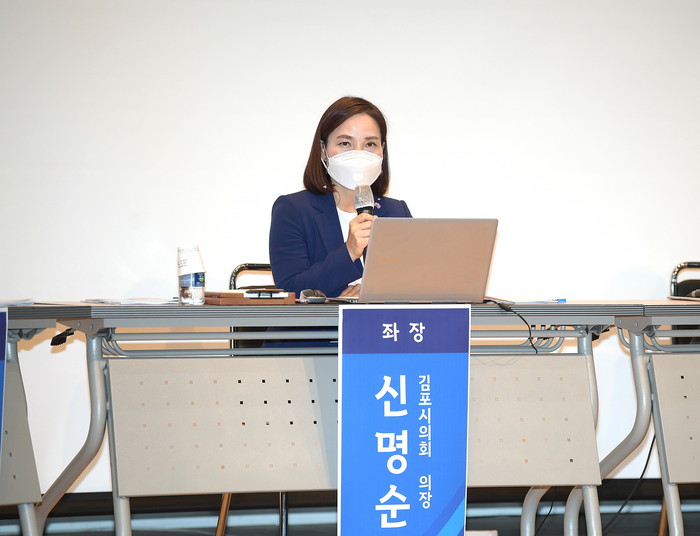 ▲지난 6일 신명순 김포시의회 의장이 좌장을 맡아 정책토론회를 진행하고 있다.(김포시의회 제공) |