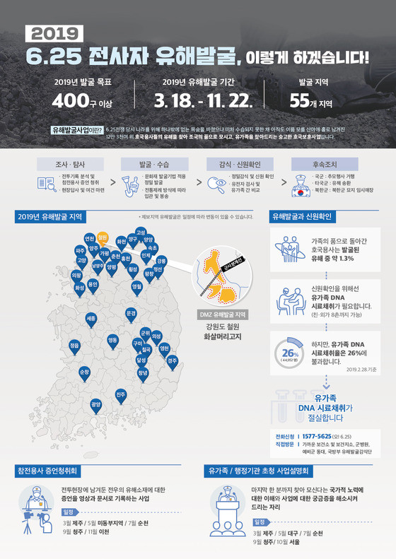2000년부터 이어진 이번 사업은 6·25전쟁 당시 나라를 지키기 위해 희생한 전사자를 찾아 조국과 가족의 품으로 모시고자 추진하는 국방부의 노력으로 계획발굴 29개, 제보지역 26개 총 55개 지역에서 진행할 예정이다.