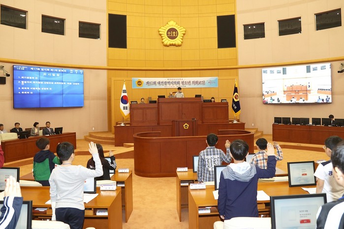 이날 ‘청소년 의회교실’에서는 대전시민을 대표해 질의토론을 벌이고 조례와 같은 주요 정책을 만드는 과정을 직접 체험하며 아이들이 민주의식을 함양하는 계기를 만들었다.