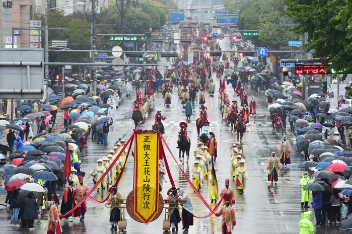 9일 행차는 빗속에서 진행됐지만 수많은 시민이 운집해 행렬을 맞았다. 시민들은 비를 맞으며 행렬을 재현하는 출연자들에게 “힘내세요!”라고 소리치며 응원하기도 했다. 이재준 수원시장은 9일 오후 장안문에서 ‘수원유수’로서 정조대왕을 맞았다.