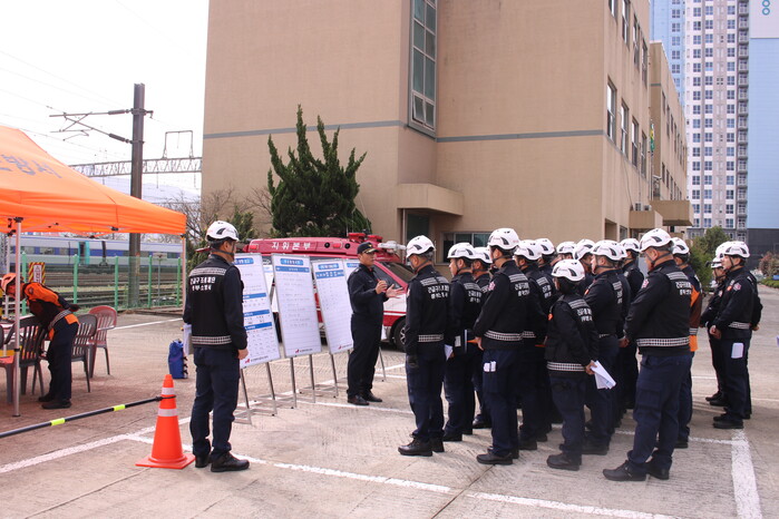 이번 불시 긴급구조통제단 가동훈련은 장소와 시간을 임의로 지정 후 철도차량의 탈선에 따른 다수사상자 발생을 가정해서 단계별 메시지 전달을 통해 실제 현장처럼 출동분대 및 통제단 각 대원들이 변화되는 상황에 따라 각자의 임무를 적극적으로 대응하기 위한 훈련이다.