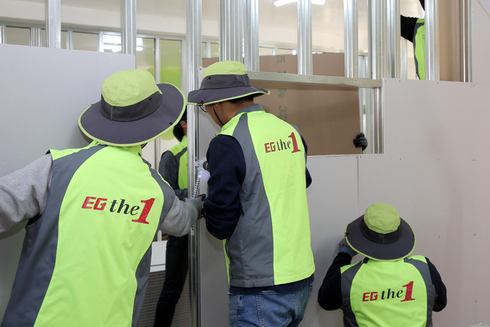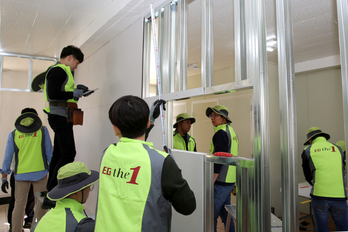 이날 봉사활동에는 라인건설 공병탁 사장과 임직원 20여명이 참석, 지역아동센터 시설 보수를 위한 후원금 2000만원을 전달하고 지역아동센터 시설 보수와 도배 및 장판 공사 등 임직원들과 함께 시설 보수를 위한 봉사활동을 펼쳤다.(사진=라인건설 제공)