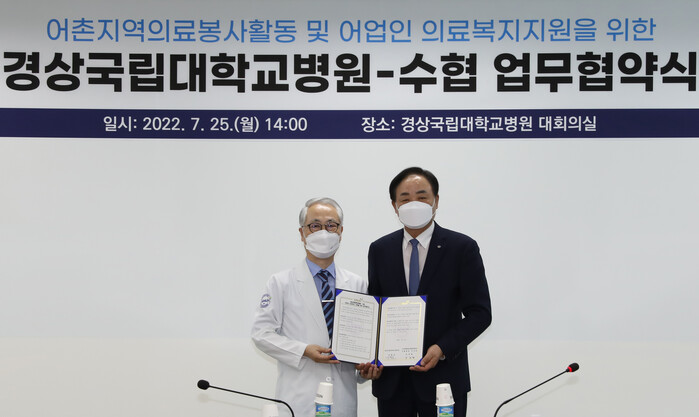 수협재단(이사장 임준택, 수협중앙회장)과 경상국립대병원(병원장 윤철호)은 25일 어업인 의료복지 지원 확대를 위한 업무협약을 체결했다.