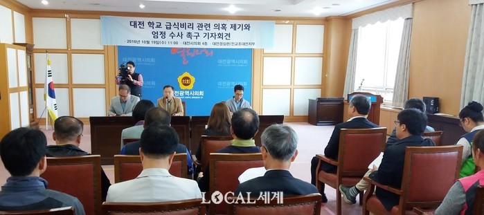 [로컬세계 조윤찬 기자]전국교직원노동조합대전지부와 대전경제정의실천시민연합은 19일 대전시의회 대회의실에서 ‘급식비리 의혹 제기와 엄정수사 촉구 기자회견’을 가졌다.