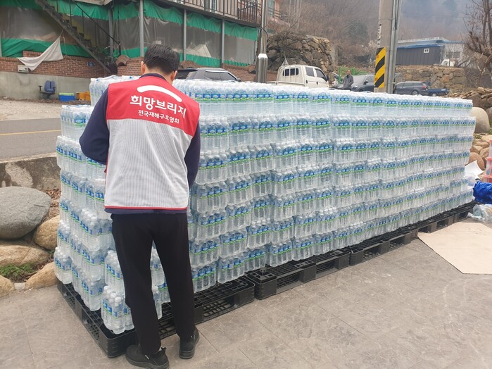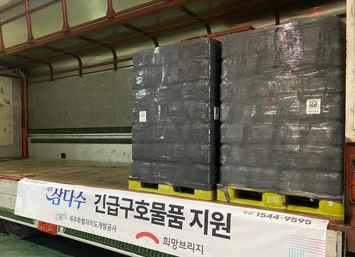 제주삼다수는 지난 2월, 희망브리지 물류센터에 제주삼다수 약 8만여병을 사전 입고시키고, 재난재해 지역에 생수 긴급 지원이 이루어질 수 있도록 하고 있다. 특히, 생수는 건강권과 직결되는 생필품으로 산불 피해 지역에 꼭 필요한 구호물품이다.