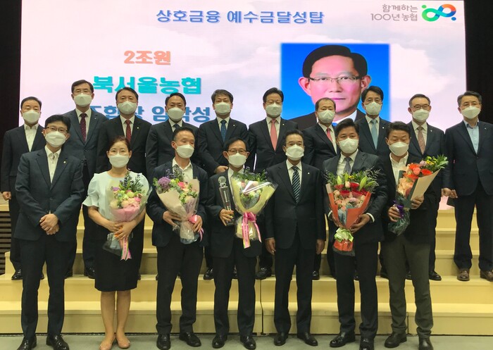 농협중앙회(회장 이성희)는 3일 개최된 정례조회에서 사업추진 우수 농축협에 대한 시상식을 가졌다. 이날 시상식에서 서울 북서울농협(조합장 임학성)이 상호금융 예수금 2조원 달성탑을 수상했다.