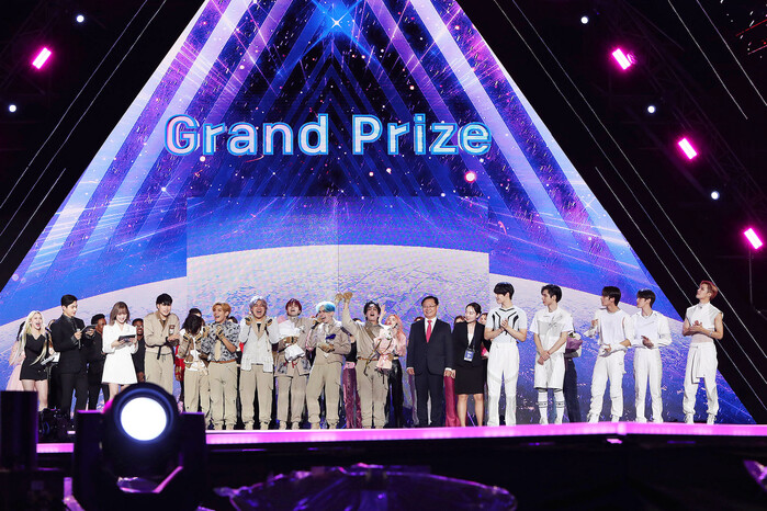 | ▲ 작년에 진행된 '2022 창원 케이팝 월드 페스티벌'에서 3 라운드 우승팀 Soldier이 트로피를 받고 기뻐하고 있다. 창원특례시 제공. |