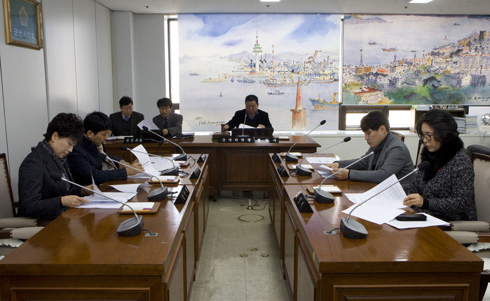 ▲14일 열린 군산시의회 운영위원회에서 의원들이 제192회 임시회에서 심사할 14건의 부의안건을 상정키로 결정했다. |