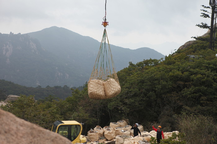 전망대 정비사업에 필요한 자재는 총 27톤가량으로 차량접근이 불가하여 헬기를 이용해 영인산 정상으로 운반하게 된다.