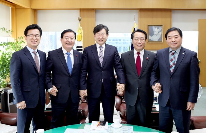 [로컬세계 조윤찬 기자]김경훈 대전시의장은 3일 오후 대전시의회를 방문한 4명의 구청장과 새해인사를 나누고 예산지원 등 현안사항에 대한 시정과 구정의 큰틀에서 소통의 시간을 가졌다.