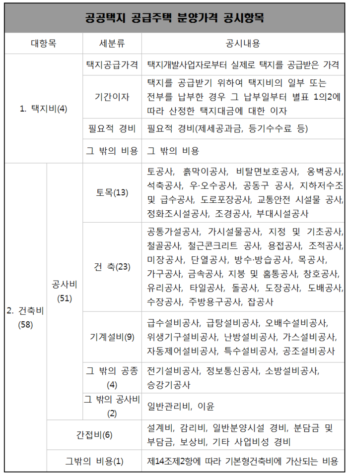 ▲공공택지 공급주택 분양가격 공시항목.(국토부 제공) |
