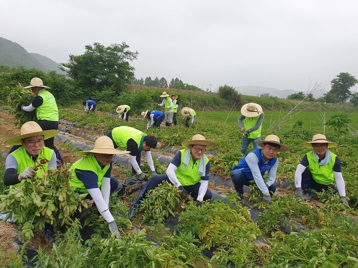 농협중앙회(회장 이성희)는 28일 ㈜한진 임직원들과 함께 경기도 파주시 적성면 소재 농가에서 '농협-㈜한진 임직원 합동 농촌일손돕기'를 실시했다고 밝혔다.