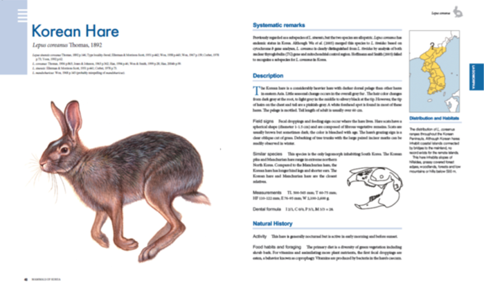 한편 그간 포유동물 도감은 1967년 당시 문교부에서 ‘한국동식물도감 포유류편’이, 북한의 과학원출판사에서 ‘조선짐승류지’가 각각 국문으로 출판된 바 있다. 이후 2004년 동방미디어 출판사에서 ‘한국의 포유동물’이, 2015년 북한 과학기술출판사에서 ‘조선동물지(포유류편)’이 각각 출판됐다.