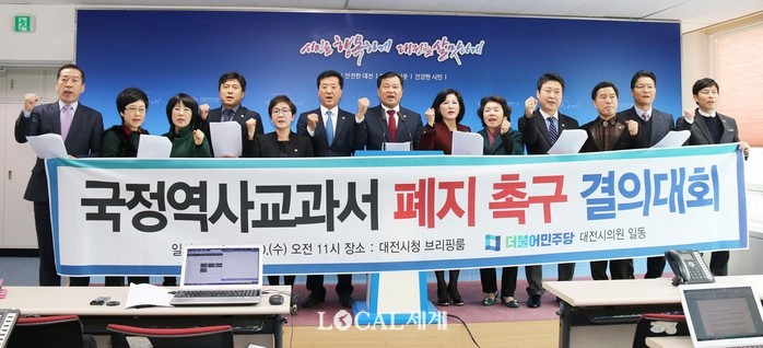 [로컬세계 오영균 기자]대전시의회 더불어민주당 의원들이 역사교과서 국정화 추진을 즉각 중단하라고 촉구했다.