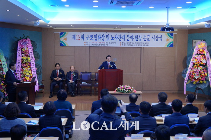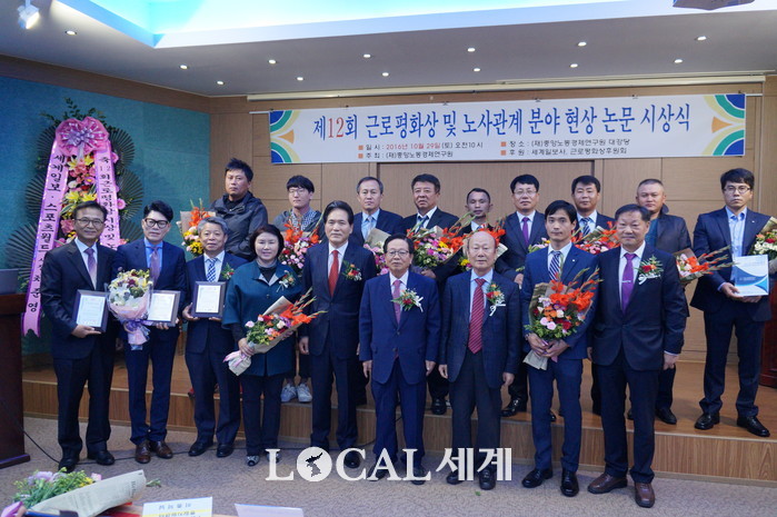 [로컬세계 라안일 기자]재단법인 중앙노동경제연구원이 29일 경기도 용인 처인구 포곡읍 연구원 대강당에서 '제12회 근로평화상 시상 및 노사관계분야 현상 논문 시상식'을 개최했다.
