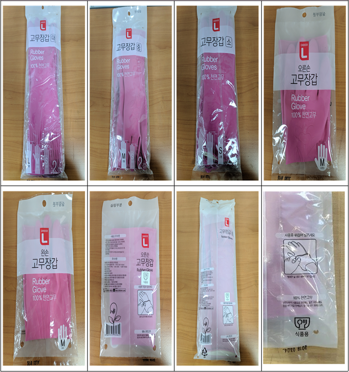 ▲고무장갑 회수 대상 제품.(식약처 제공) |