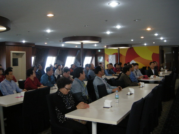 13일, 동해항을 출발한 연수단은 선상에서 윤정규 평화연합 사무총장이 ‘한반도 평화 통일과 한민족 항일운동의 재정립’을 주제로 세미나를 진행했다.