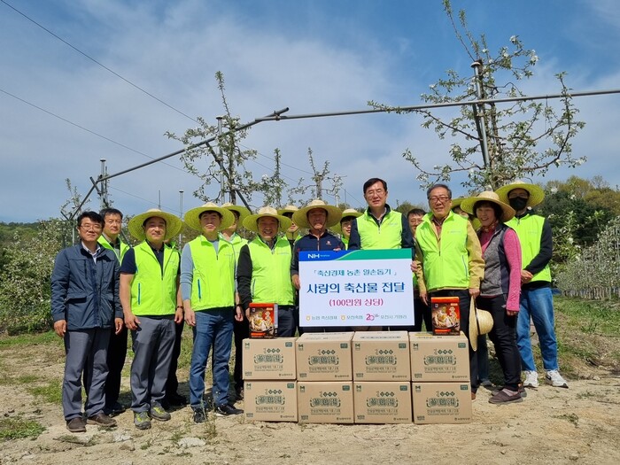 이날 안병우 대표 및 포천축협 양기원 조합장 등 임직원 30여 명은 사과 꽃따기, 마을 환경 정화 활동을 실시했으며, 마을 어르신들과 이웃들에게 목우촌 삼계탕을 전달해 뜻깊은 시간을 보냈다. 그리고 축산유통부는 젖소농가를 방문해 축사 환경 정비를 도왔으며, 축산물도매분사는 사과 농가 적과 작업을 지원했다.