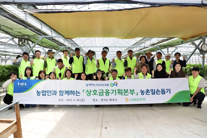 상호금융기획부는 화성 태안농협 딸기농가를, 상호금융디지털사업본부 임직원들은 충남 서산의 벼 육묘장을 방문해 육묘파종과 묘판 녹화장 출고작업을 하며 적극적으로 농촌 일손을 보탰다.