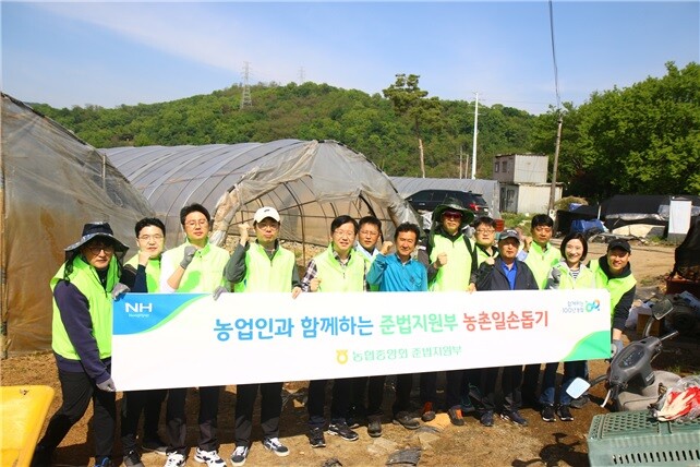 준법지원부 직원들은 구리 토평동 소재 부추 시설채소 농가에서, 인재개발원과 중앙교육원은 합동으로 고양시 화훼농가를 찾아 일손을 보탰으며, 안성교육원은 대덕농협 육묘장을 방문해 못자리 작업과 모판 나르기 등을 했다.