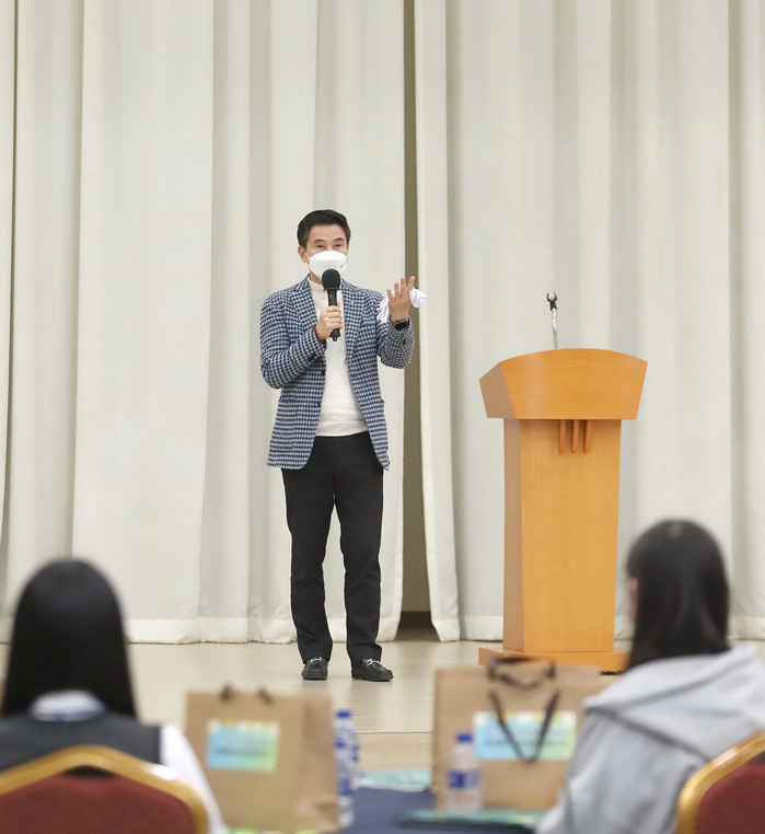 ▲22일 서철모 화성시장이 ‘시민참여단 발대식’에서 축사를 하고 있다. 화성시 제공 |