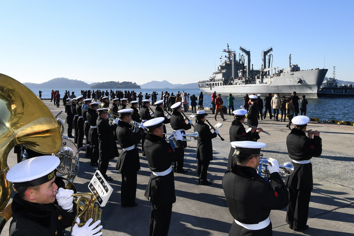 해군사관학교 제71기 생도들의 실무부대 적응력 배양과 군사외교활동을 펼쳐 온 해군 순항훈련전단은 이날 정진섭 해군작전사령관을 비롯한 군 주요지휘관 및 장병, 그리고 가족들이 참석한 가운데 입항환영식을 가졌다.