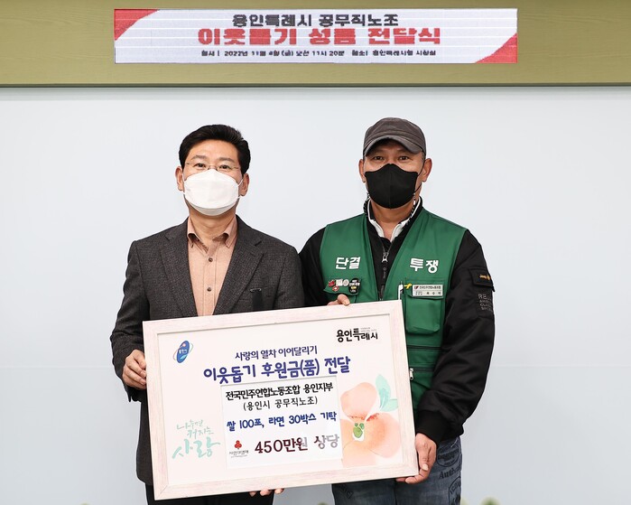 한편 용인시 공무직노동조합은 지난해 투병 중인 하수운영과 공직자를 돕기 위해 성금 300만원을 기탁하는 등 매년 따뜻한 나눔을 실천하고 있다.