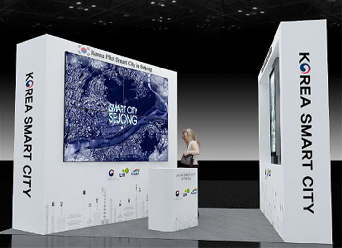 ▲국가시범도시 및 ‘아세안 스마트시티 네트워크’ 시범사업을 소개하기 위한 한국관 부스 배치도.(국토부 제공) |