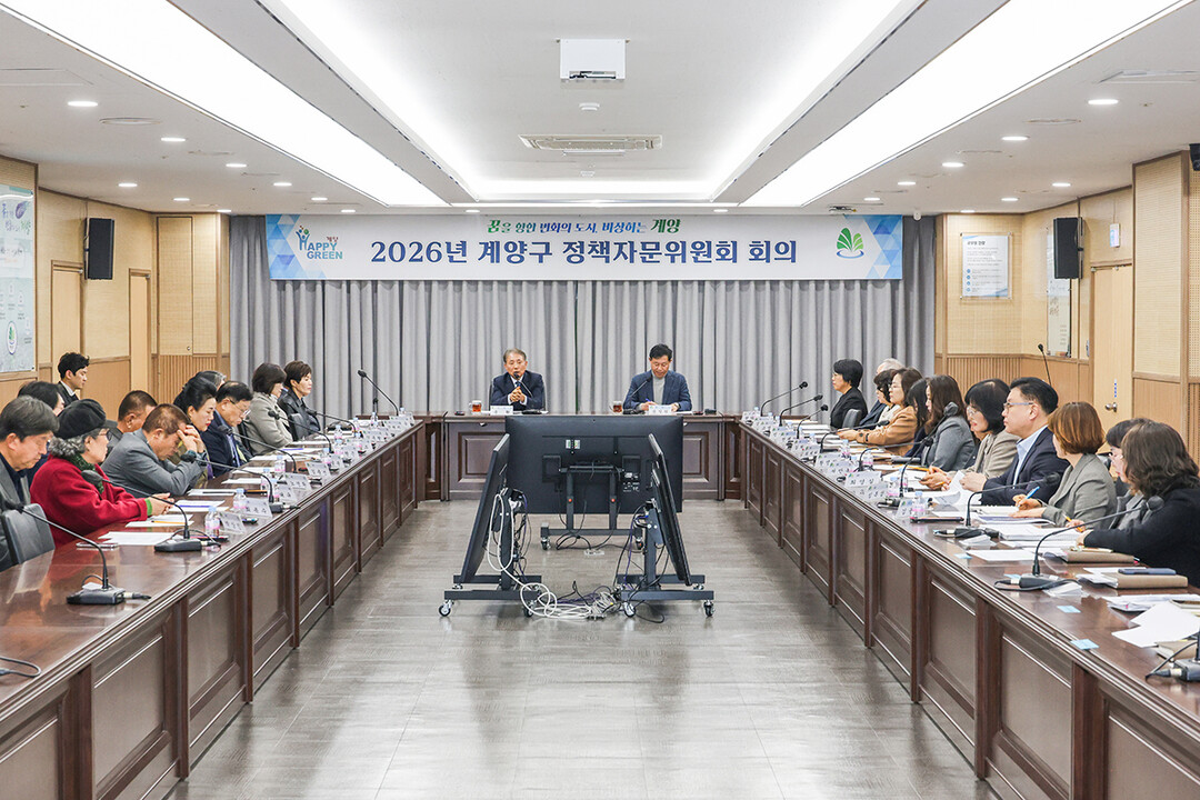 윤환 인천시 계양구청장은 구정 주요 현안과 정책 과제에 대한 전문가 의견을 수렴하고 발전 방향을 모색하기 위해 지난 11일 구청 영상회의실에서 ‘2026년 제1회 정책자문위원회’를 개최했다.