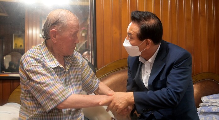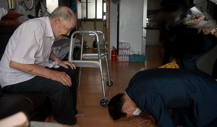 지난 13일 백성현 논산시장은 애국지사 고(故) 한규섭 옹의 자녀인 한기홍 옹(95세)과 순국선열 고(故) 배영직 옹의 손주 배기성 옹(95세)의 자택을 직접 방문해 깊은 감사의 뜻과 선물을 전했다.