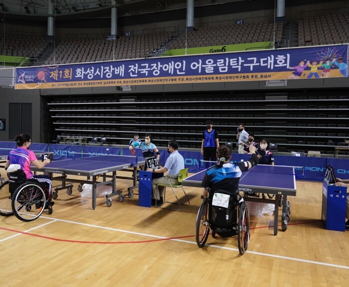 [로컬세계=고용주 기자]경기 화성시는 지난 20일 화성종합경기타운에서 ‘제1회 화성시장배 전국장애인어울림탁구대회’를 개최했다고 21일 밝혔다.