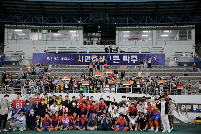 2012년에 창단한 파주시민축구단은 20시즌 이은노 감독의 지휘 아래 K4리그를 우승해 K3리그로 승격했고, 21시즌 승격 첫해 10위의 준수한 성적으로 마무리했으며, 22시즌 16경기 무패로 승점 47점을 획득해 리그 1위를 수성하고 있다.
