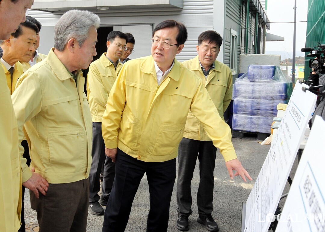 [로컬세계 = 지차수 기자] 강호동 농협중앙회장은 5일 충북 음성군 삼성면에 위치한 거점소독시설을 방문해 방역 추진 상황을 점검했다.