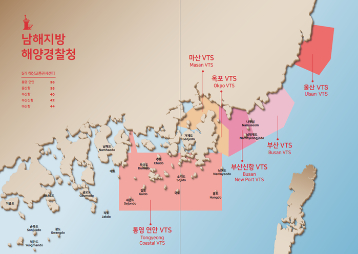 ▲남해지방행량경찰청 VTS 관제구역도. 남해해경청 제공 |