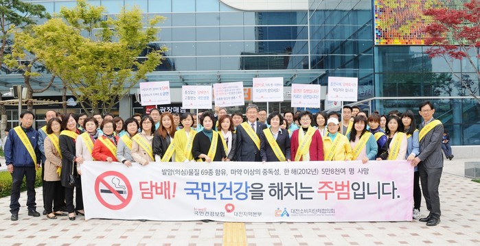 [로컬세계 조윤찬 기자]국민건강보험공단 대전지역본부와 대전소비자단체협의회가 20일 대전복합터미널 등에서 금연 캠페인을 전개했다.