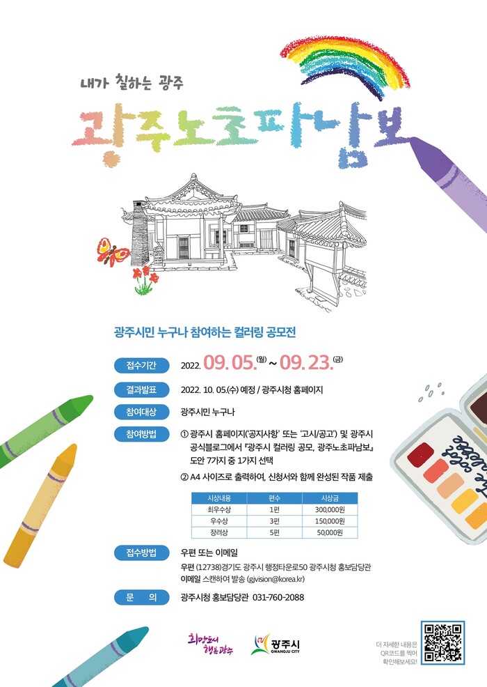 [로컬세계=김병민 기자]경기 광주시는 오는 23일까지 광주시민을 대상으로 ‘내가 칠하는 광주, 광주노초파남보’라는 주제로 ‘컬러링 공모전’ 개최한다.