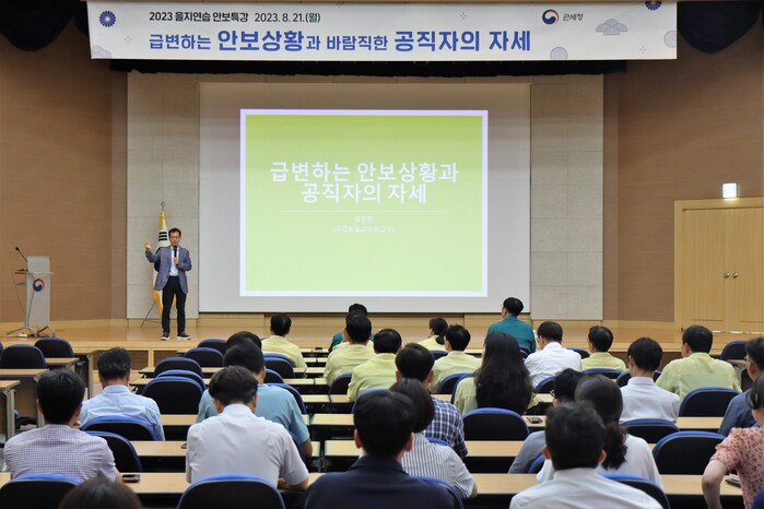 관세청은 '2023년 을지연습' 시행 첫날인 21일 정부대전청사에서 전 직원을 대상으로 특별 안보강연을 개최했다.
