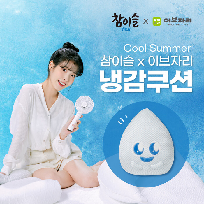 이번 한정판 굿즈는 참이슬의 상징인 이슬방울을 모티브로, 이브자리만의 차별화된 냉감 접촉 소재를 적용해 여름에도 시원한 쿠션을 제작했다. 이슬방울 냉감쿠션은 7월 14일부터 하이트진로의 두껍상회와 전국 이브자리 9개 직영점 및 이브자리 온라인 채널을 통해서 600개 한정 판매한다. 가격은 65,000원에 만나볼 수 있다.