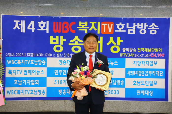 [로컬세계=김경락 기자]전북 고창군의회 임정호 의장이 지난 13일 광주5.18기념문화센터 대동홀에서 열린 제4회 복지TV호남방송 방송대상에서 '지방자치분야 의회발전부문' 대상을 수상했다.