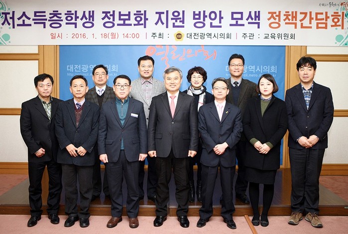 대전시의회는 18일 의회 대회의실에서 교육위원회 주관으로 저소득층학생 정보화 지원과 관련한 효율적인 지원방안 모색을 위해 관계기관과의 간담회를 가졌다.