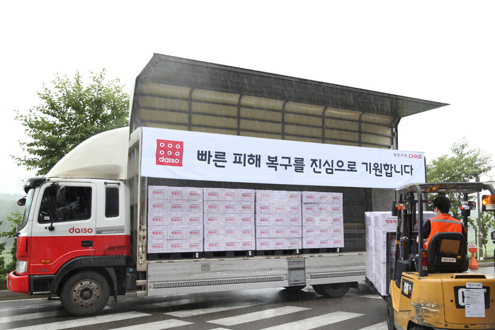 균일가 생활용품점 (주)아성다이소(대표 박정부)가 폭우로 큰 피해를 입은 수재민에게 5일 행복박스 500여 개를 전달했다.