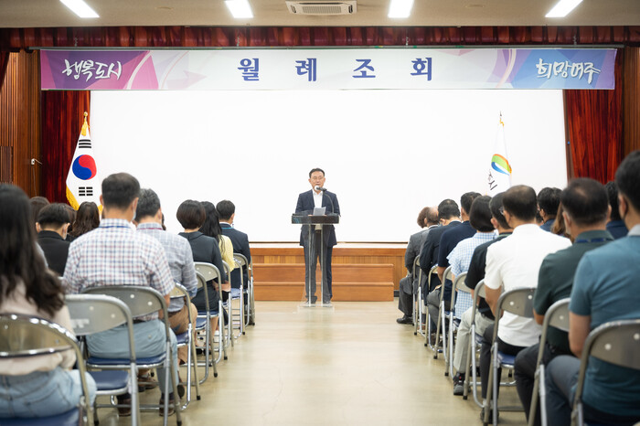 [로컬세계=김병민 기자]경기 여주시에서는 9월 2일 시청 대회의실에서 9월 월례조회를 개최했다.