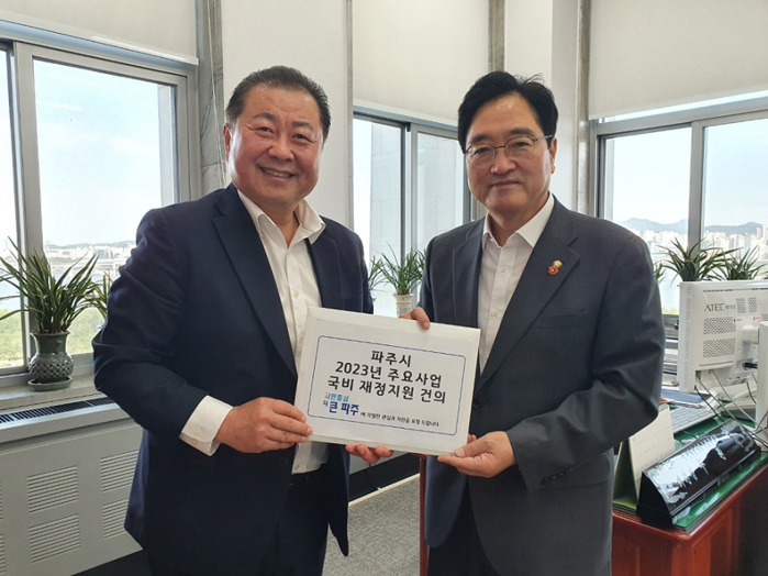 [로컬세계 = 이영원 기자]김경일 파주시장이 22일 우원식 국회 예산결산특별위원장을 만나 2023년 파주시 주요사업에 대한 국비 지원 필요성을 설명하고 국회의 적극적인 협력을 요청했다.