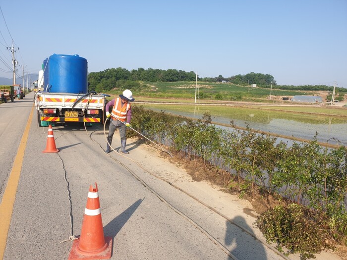김주수 군수는 “가뭄으로 인한 피해를 최소화하기 위해 수목 관리에 다각적인 노력을 기울일 계획이며, 관수작업으로 인해 통행에 다소 불편함이 있더라도 군민 여러분의 양해와 협조를 부탁드린다”고 말했다.