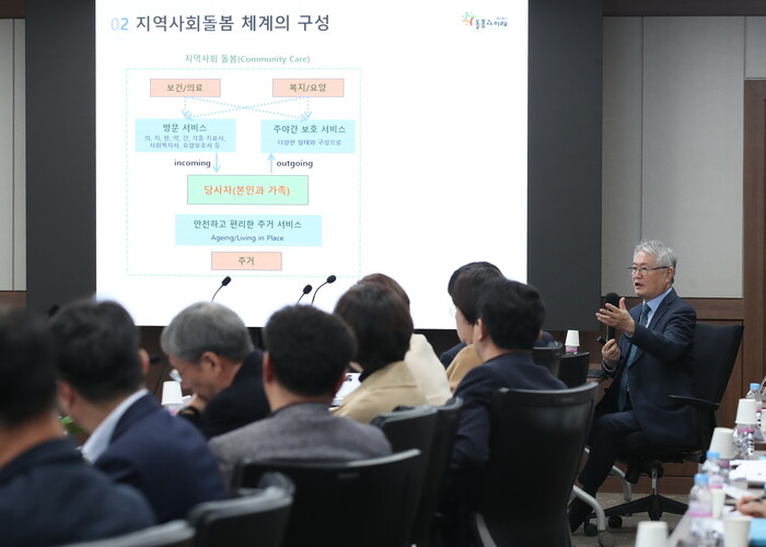 이날 강사로 나선 김용익 전 국민건강보험공단 이사장(현 돌봄과 미래 이사장)은 화성형 지역사회돌봄 모형 구축을 위한 대응 전략을 제시했다.
