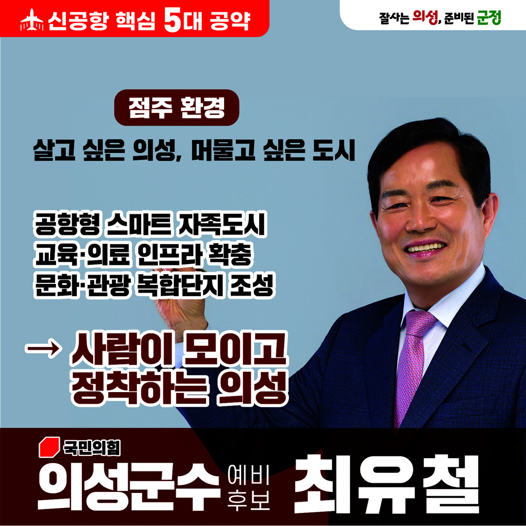 최 예비후보는 “신공항은 단순한 기반시설이 아니라 도시와 산업, 사람이 함께 성장하는 생활권으로 완성되어야 한다”며 “의성을 공항 배후의 핵심 생활·산업 거점으로 단계적으로 육성하겠다”고 밝혔다.