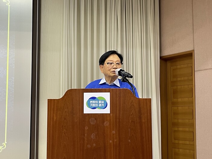 ▲ 대회사하는 최정환 피스로드 2023 경기남부 공동위원장. 피스로드조직위원회 제공 |
